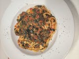 Served with jumbo shrimp on white wine sauce, spinach & homemade chunk tomato sauce.